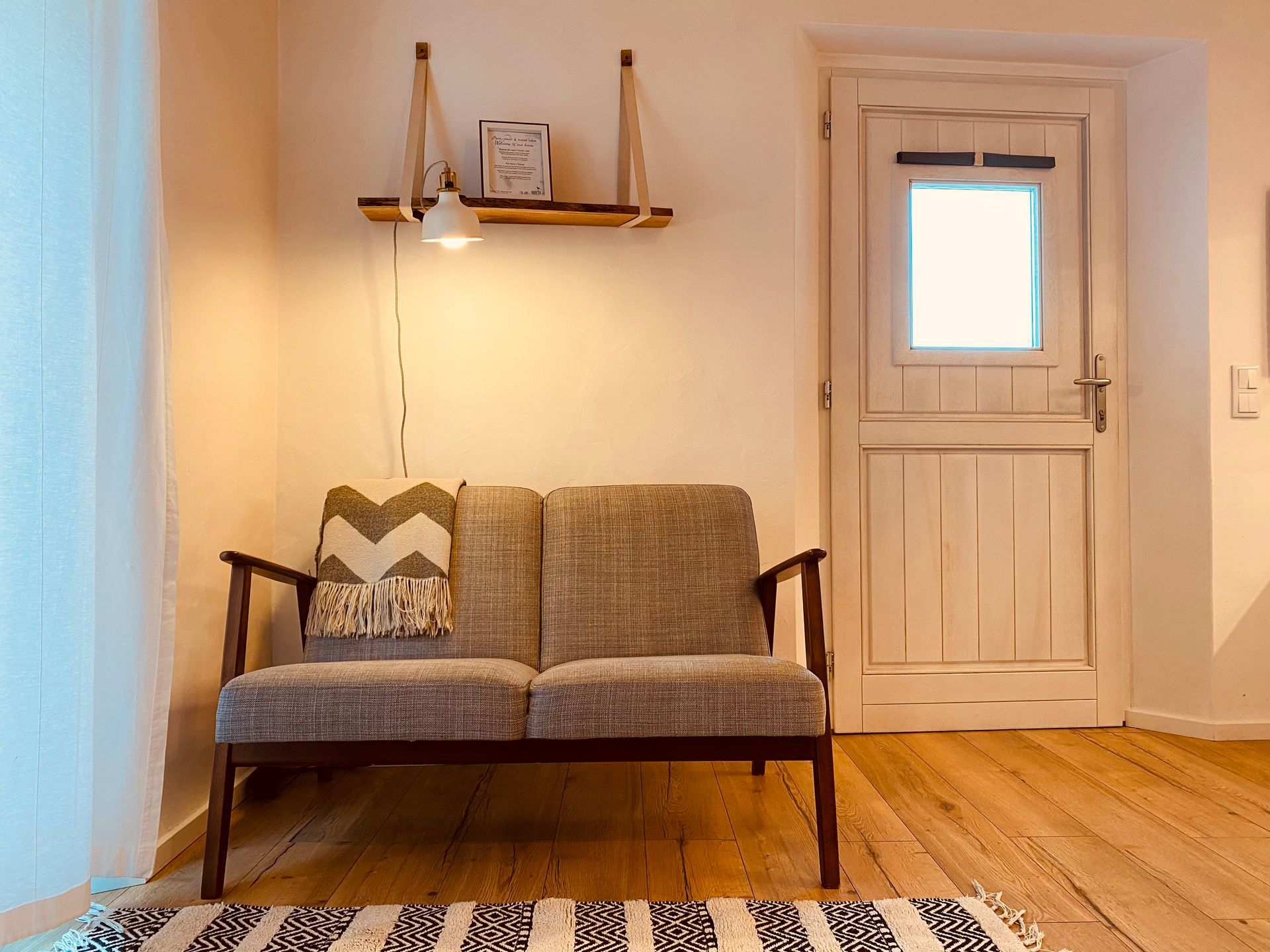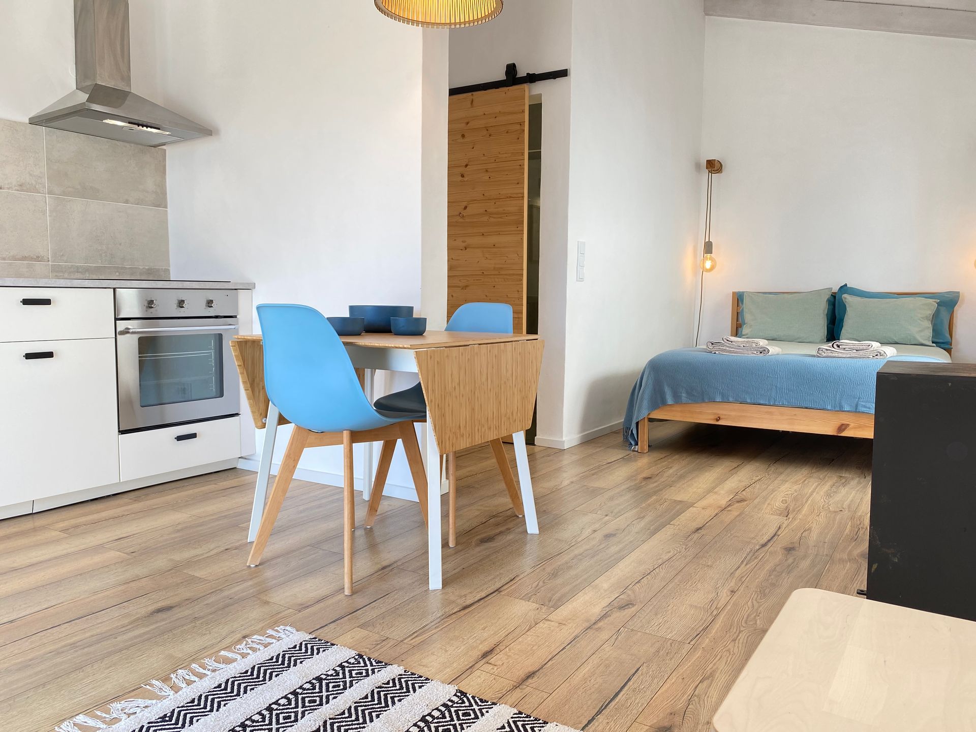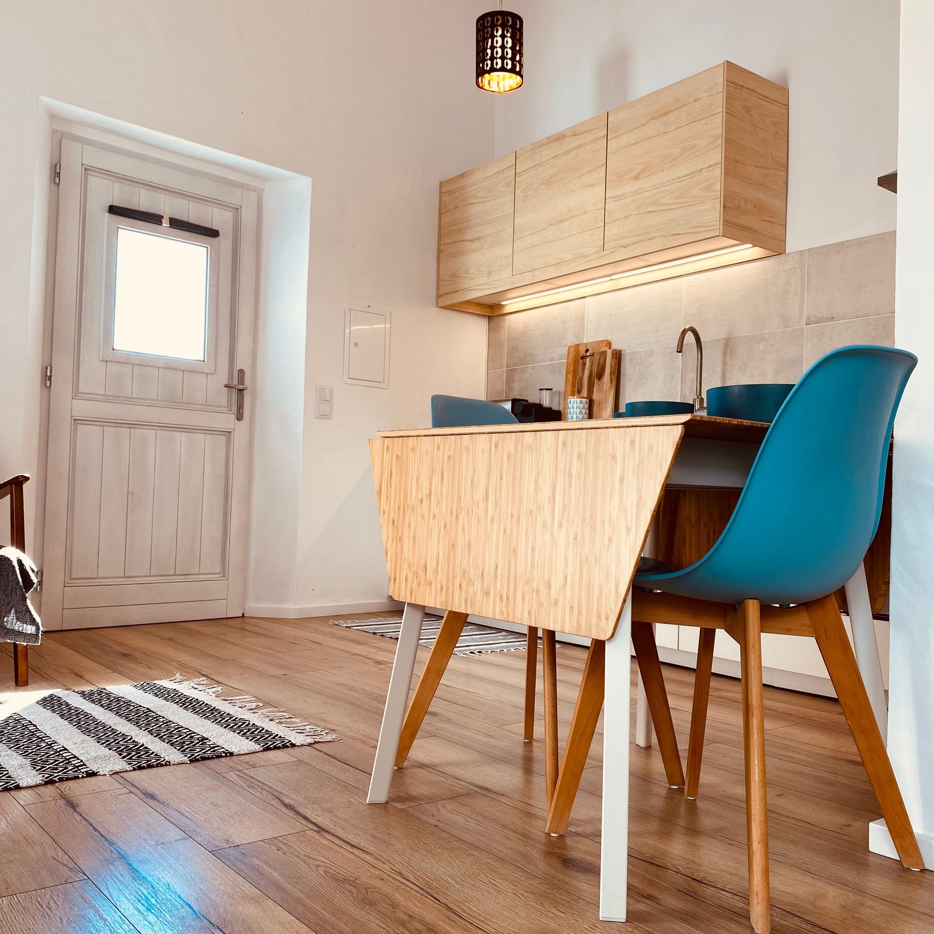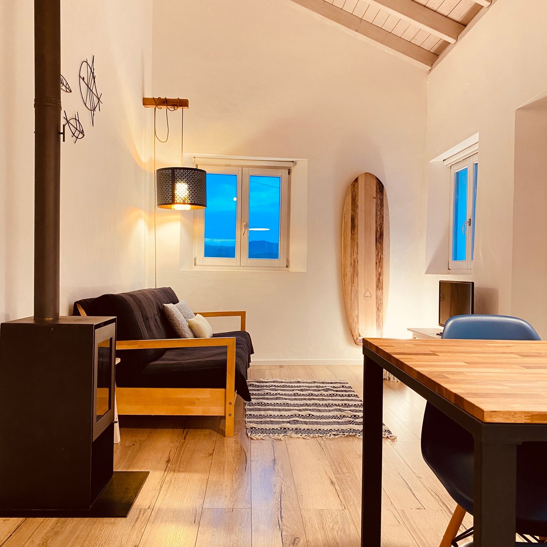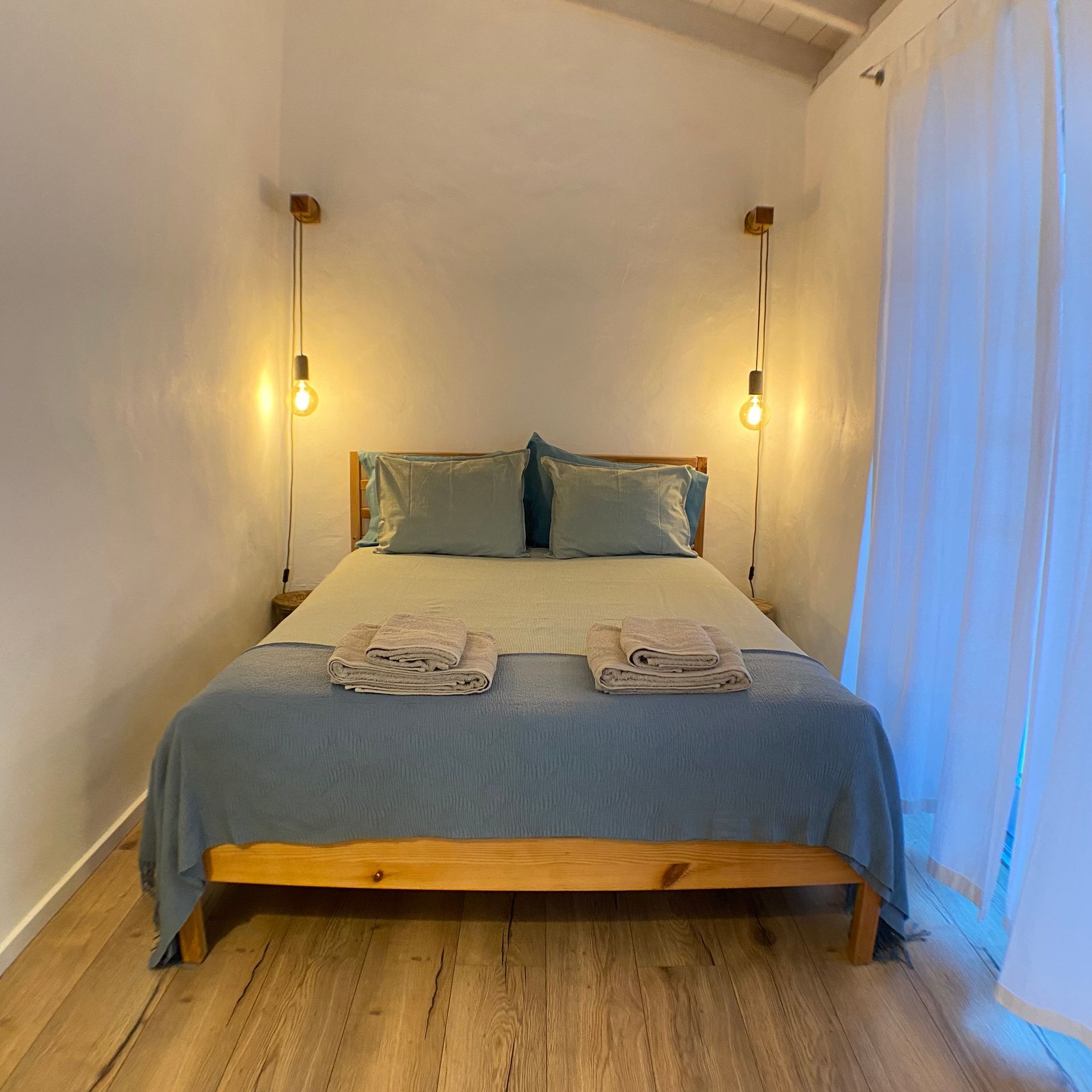 House with a double bedroom, a bathroom with shower and a living room with fully equipped kitchen. Outdoor space with table and garden. Ideal for two people, with the possibility of one more child as we have extra baby bed.