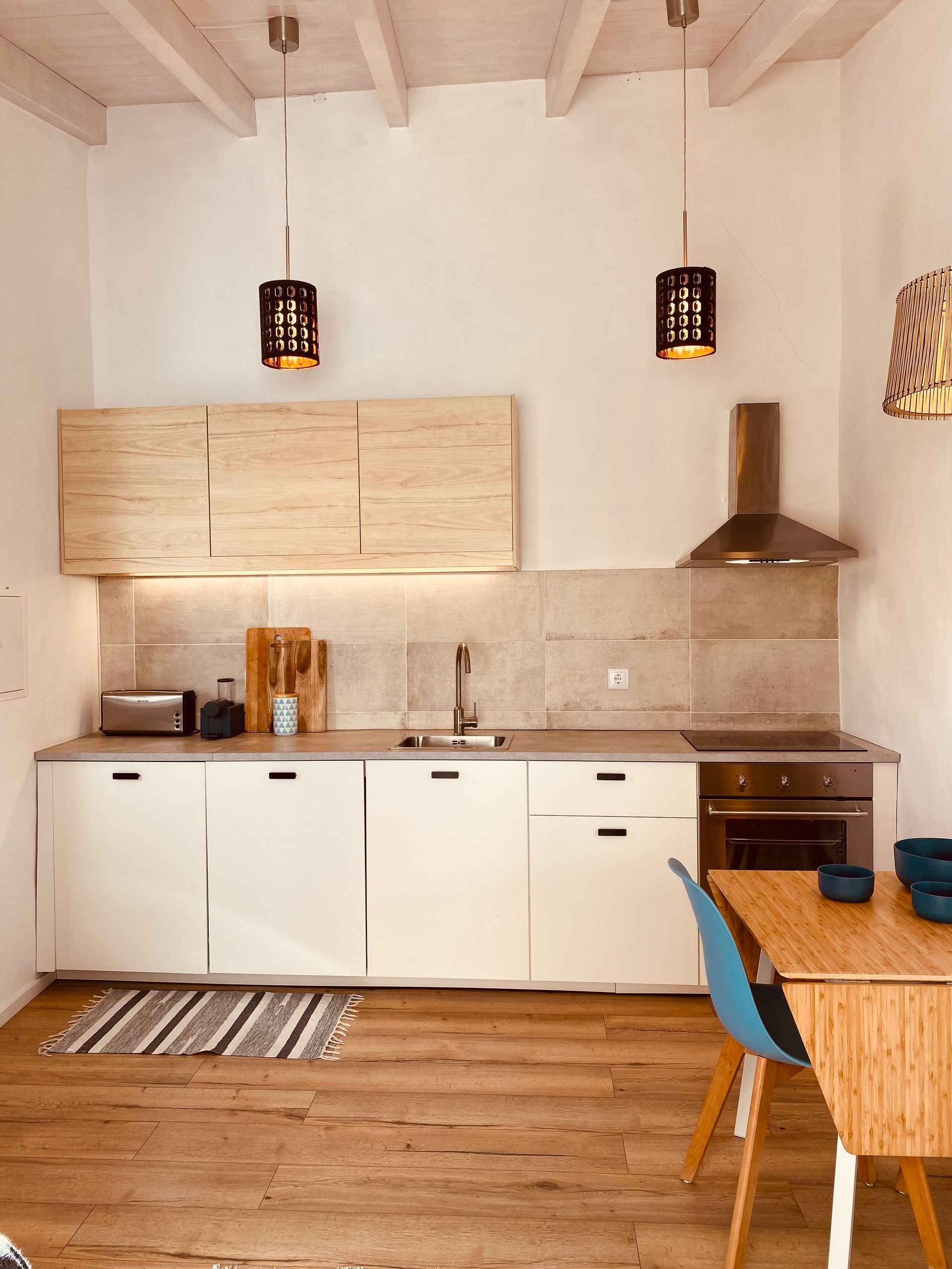 House with two double bedrooms, a bathroom with shower and a living room with fully equipped kitchen. Small outdoor patio with a table. Ideal for four people, with the possibility of one child as we have an extra baby bed.